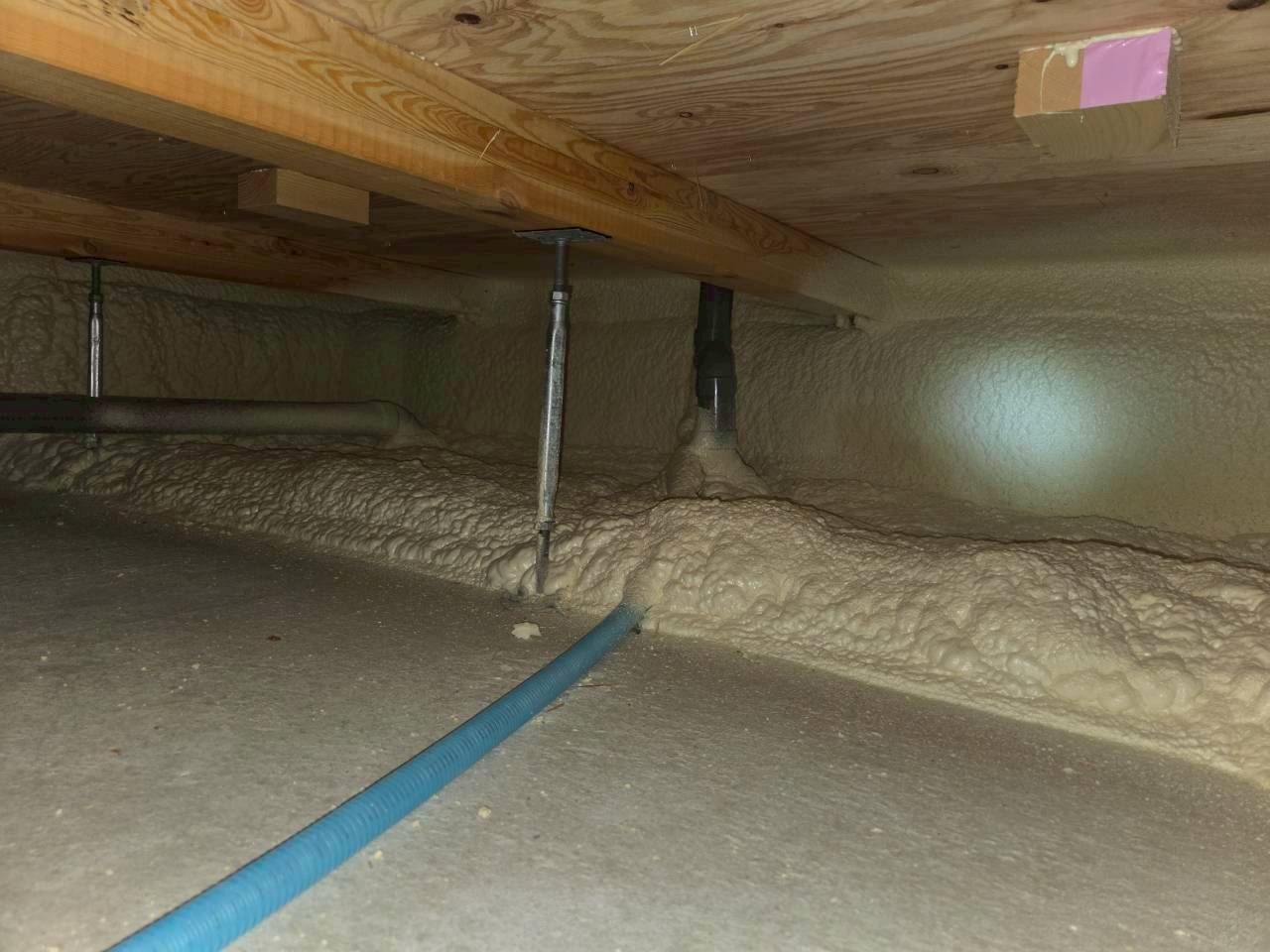 床断熱は、床の裏側に断熱材を施工する方法です。